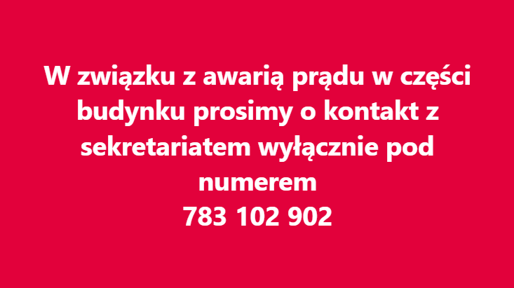 W związku z awarią prądu w części budynku prosimy o kontakt z sekretariatem wyłącznie pod numerem 783 102 902