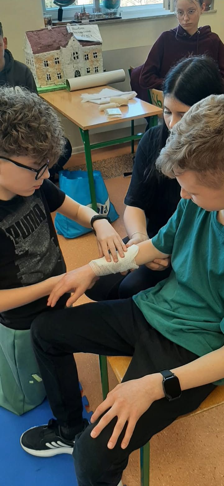 W ramach zajęć edukacji zdrowotnej zostało przeprowadzone szkolenie z udzielania pierwszej pomocy przedmedycznej w klasie 4a i 5b.