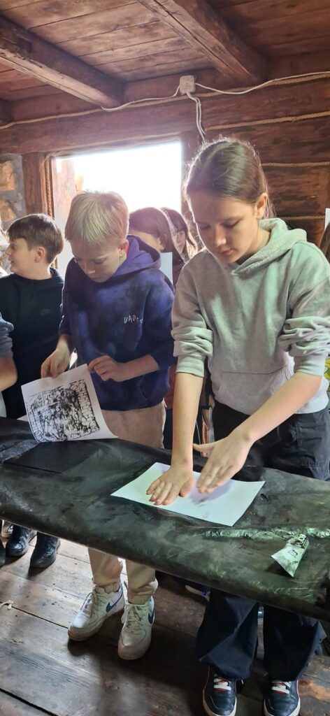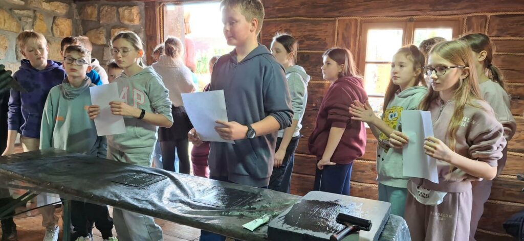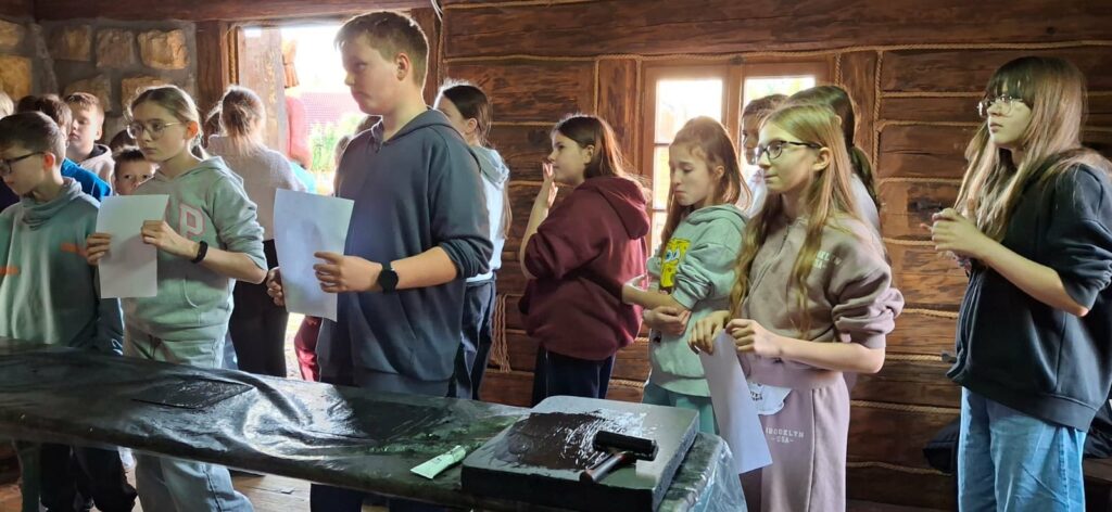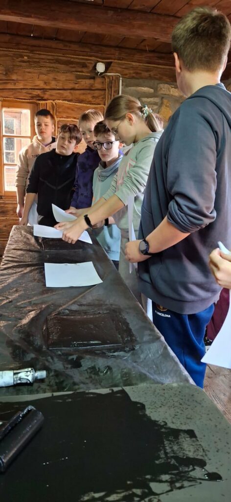 Uczniowie uczestniczyli także w warsztatach litograficznych, poznając jedną z najstarszych technik druku. Każdy mógł wykonać własną odbitkę było to kreatywne, edukacyjne i bardzo satysfakcjonujące! ️