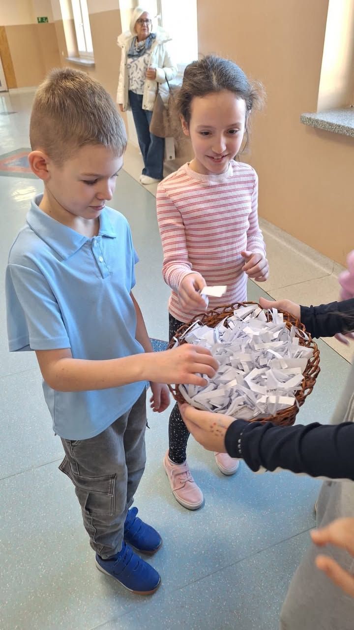 To piękny moment, w którym uczniowie dzielą się drobnymi upominkami, uśmiechem i dobrą energią.
