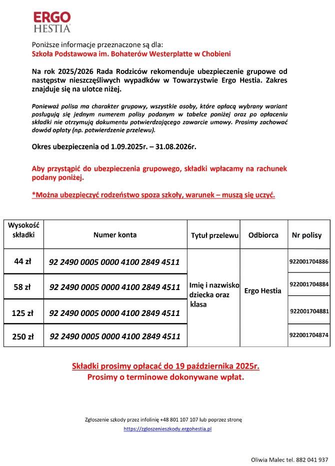 Pragniemy przypomnieć o ubezpieczeniu dzieci.